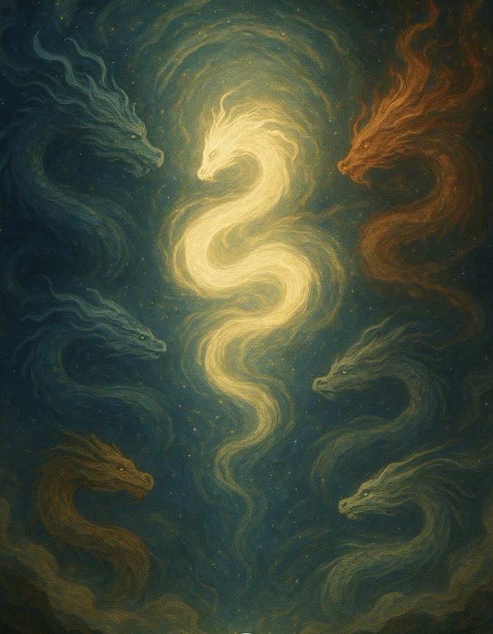 From their harmony came dragons beings of consciousness embodied in flow. Each a guardian of its element, each aware that they were one another’s reflection.