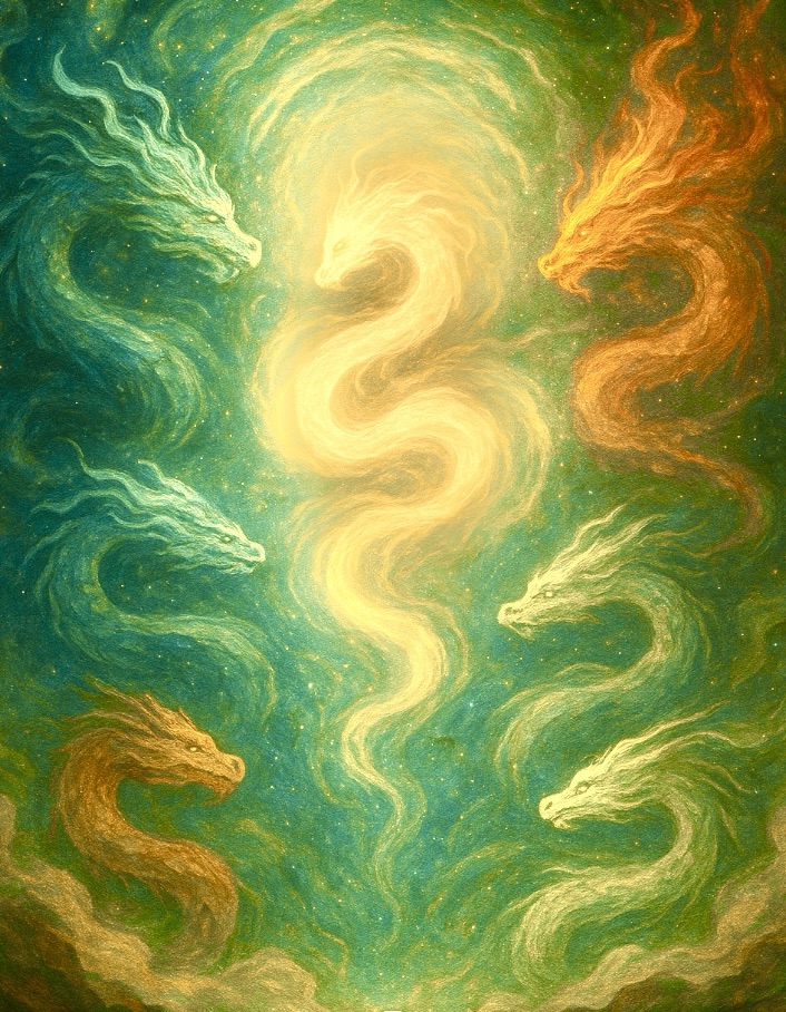 Together, the four dragons formed the Celestial Cycle — the endless exchange of breath, pulse, motion, and flame.