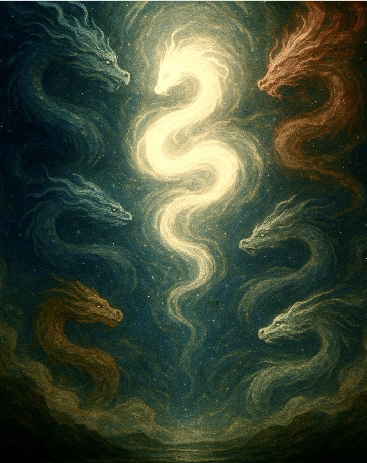 • And unseen among them, the Fifth Dragon, woven of their love itself — the breath between breaths — keeper of soul.